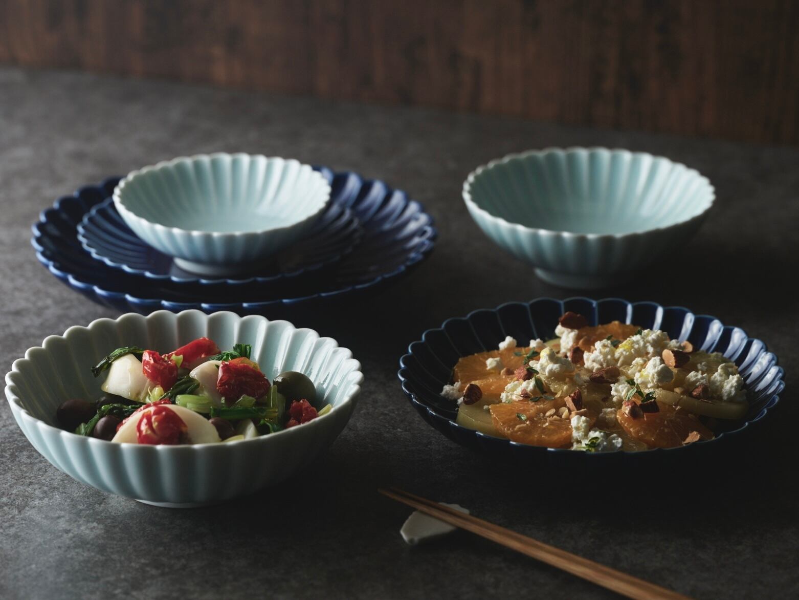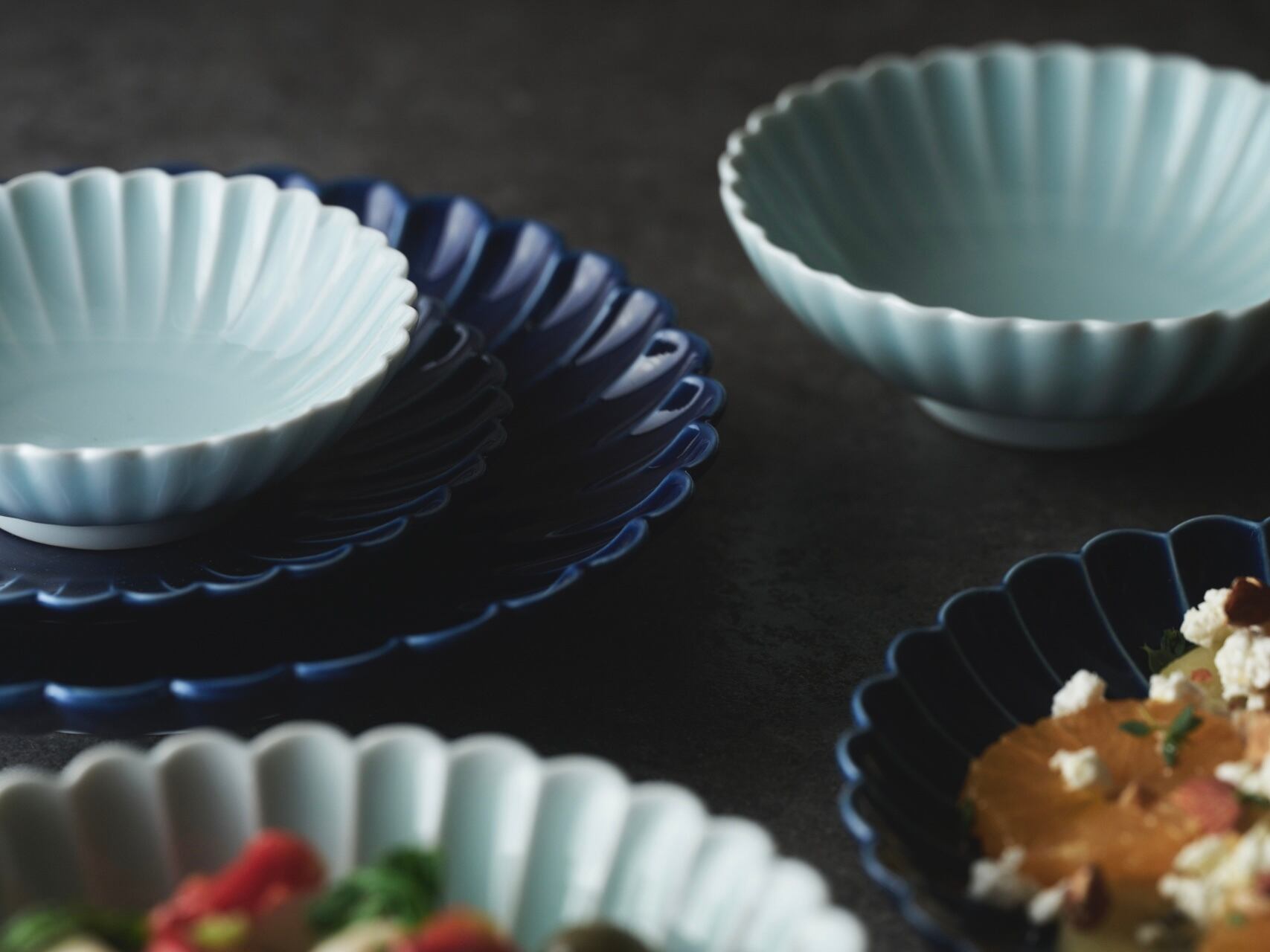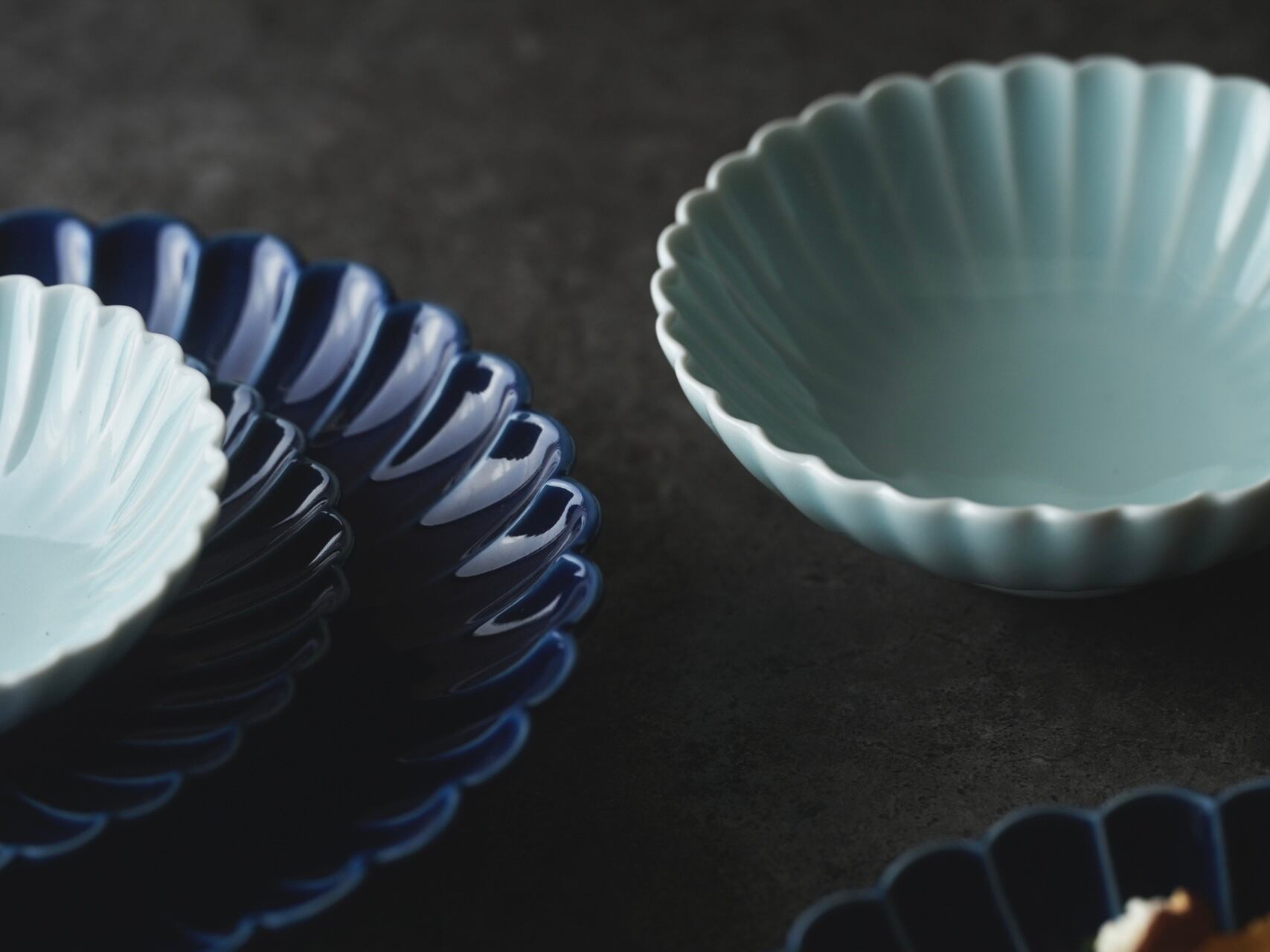 菊彫 瑠璃/青白釉